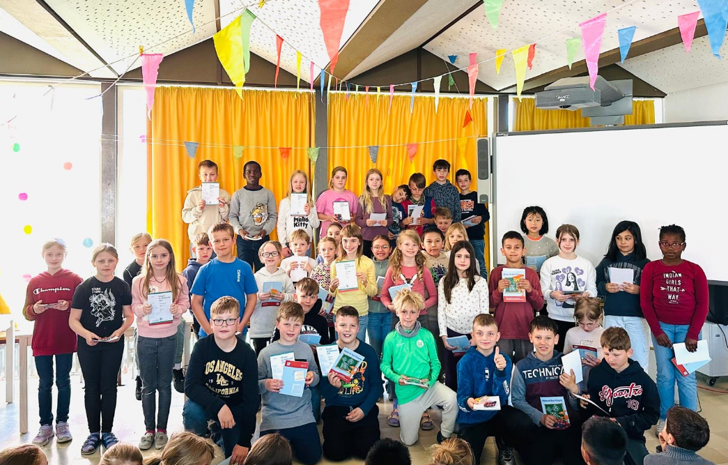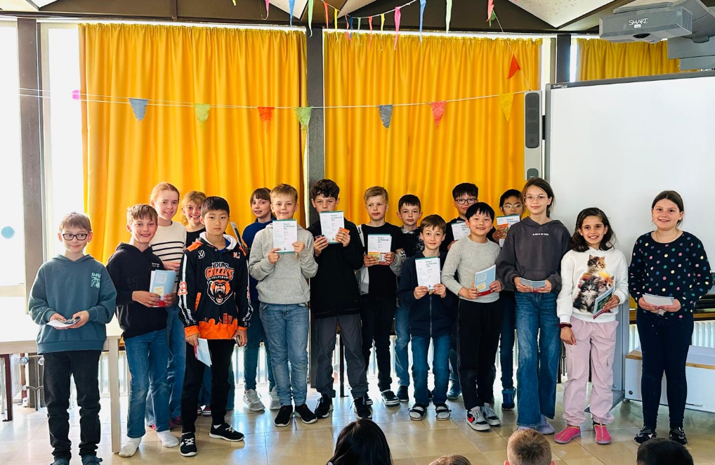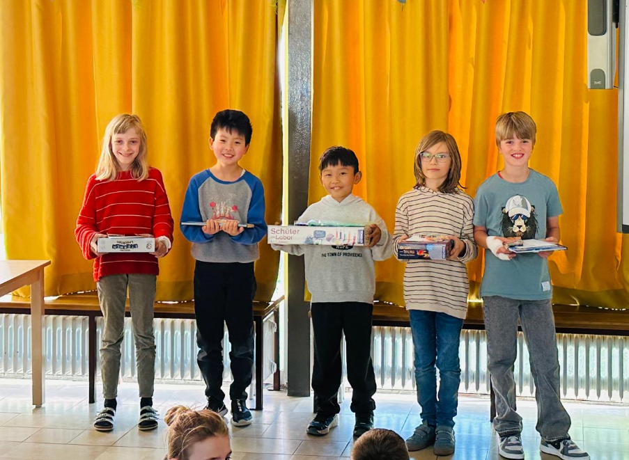 Luca (98,75), Simon B. (105,00) und Noah (108,75) erreichten alle einen zweiten Preis und freuten sich über Bücher und einen Experimentierkasten.